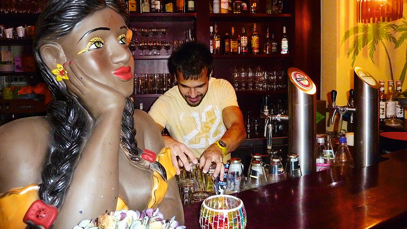 buntes Cocktailangebot, exotische, frische Säfte und verschiedene Biere vom Fass