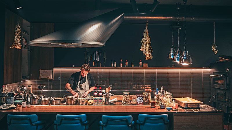 Das Restaurant im Osnabrücker Stadtteil Lüstringen ist ein Gesamtkunstwerk. Das reicht vom Geschirr, das Küchenchef Tom Elstermeyer selbst getöpfert hat bis zu den perfekt aufeinander abgestimmten Menüs – wahlweise einem Viergänge-Menü oder einem Sechsgänge-Menü. Hinzu kommt die entspannte Atmosphäre im IKO und ein Team, das den Gast erstklassig umsorgt und gerne auch mit einem „Du“ anspricht. Küchenchef Tom Elstermeyer haben die Gäste dabei stets im Blick: Hinter einer großen Theke inmitten des Restaurants kann man ihm live beim Kochen zusehen.