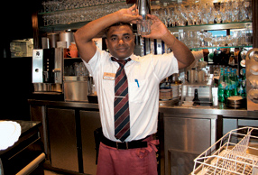 AHMED NAZEER: Ich bin auf den Malediven geboren und aufgewachsen und dort auf eine „Hotel School“ gegangen. Da habe ich dann nicht extra den Barkeeper-Beruf erlernt – es war eher learning by doing. Jetzt bin ich seit 18 Jahren dabei und habe jede Menge Erfahrungen, lerne aber immer noch dazu.
